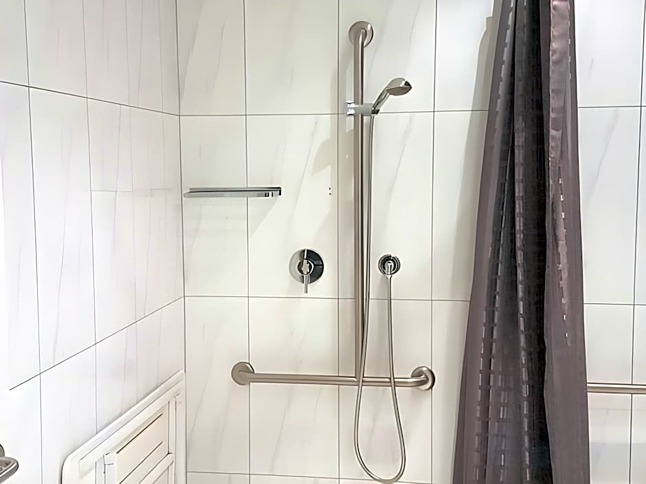 This open-plan room features a kitchenette with a Nespresso coffee machine, and a work desk with WiFi access. It also has a flat-screen TV with cable channels, a hairdryer and ironing facilities.